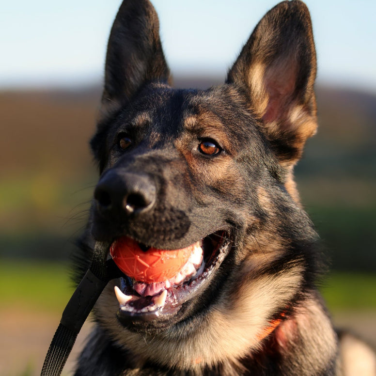 Hunde sollten nicht mit dem Ball spielen, wenn keine daran befestigte Schnur vorhanden ist.
